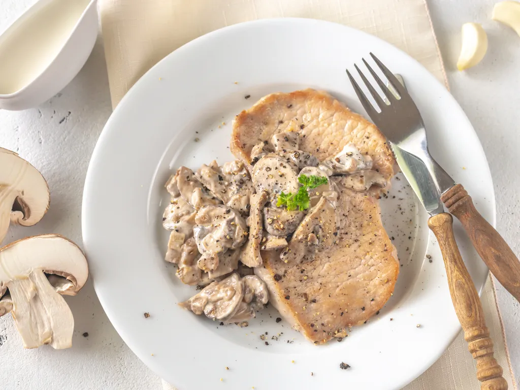beurre, champignon, porto, cognac, crème fraîche, poivre, sel, filet mignon, échalote, roquefort