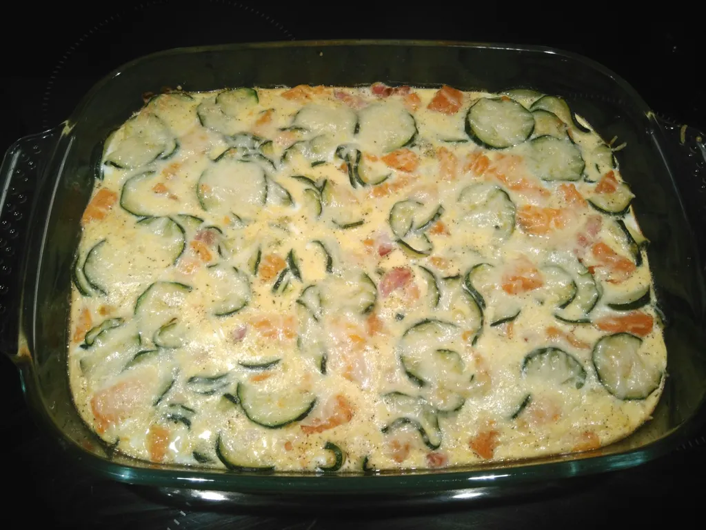 courgette, lait, lardons, sel, poivre, oeuf, patate douce, gruyère