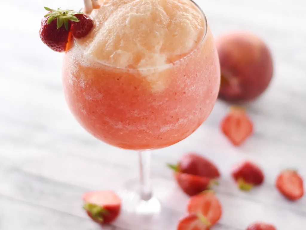 vin rosé, fraises, pêche, glaçons