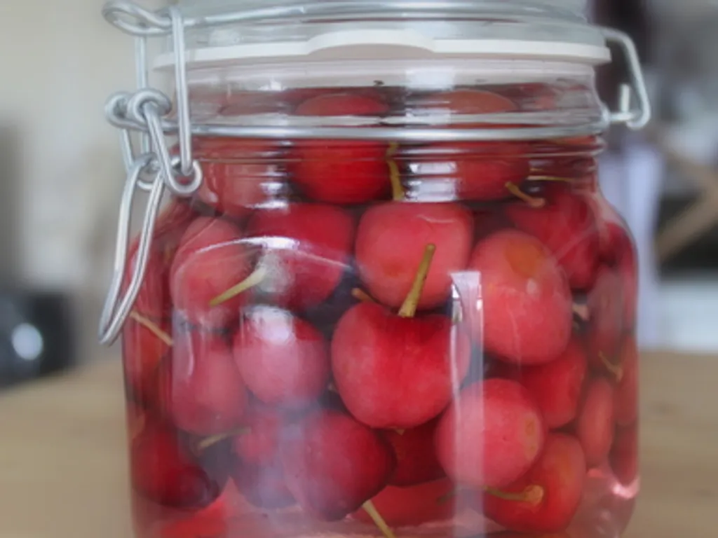 le matériel doit être parfaitement propre (bocaux à large embouchure et bouchons de liège ébouillantés). alternez dans le bocal par couches fruits et sucre.