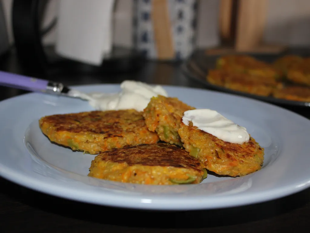 déposer avec une cuillère à soupe des petits tas de ce mélange dans un poêle bien chauffée avec un peu d'huile d'olive. faire dorer une dizaine de minutes de chaque coté à feu doux.
