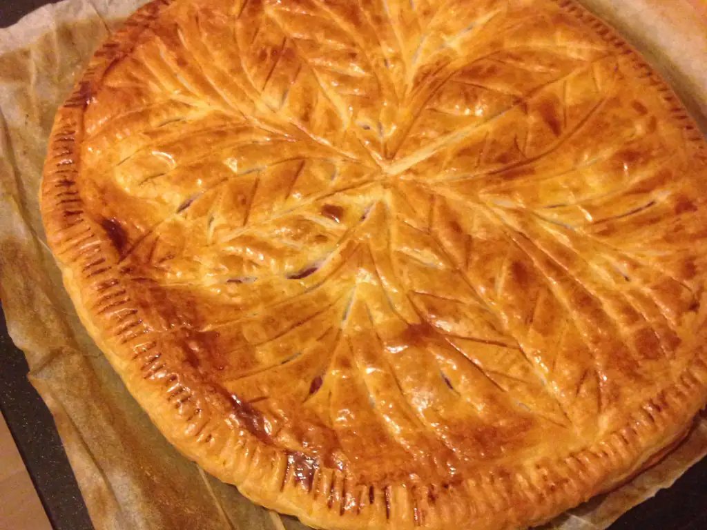etaler la préparation dessus, en laissant environ 3 cm tout autour, puis mettre la fève.