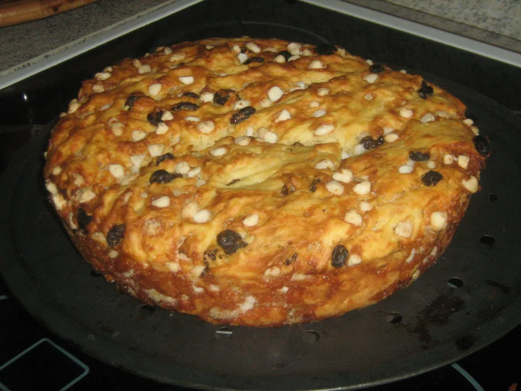 versez dans une forme à gâteau beurrée et laisser encore lever 15 minutes (couvert)(il lèvera encore pendant les 10 premières minutes de cuisson, attention encore à la dimension du moule).