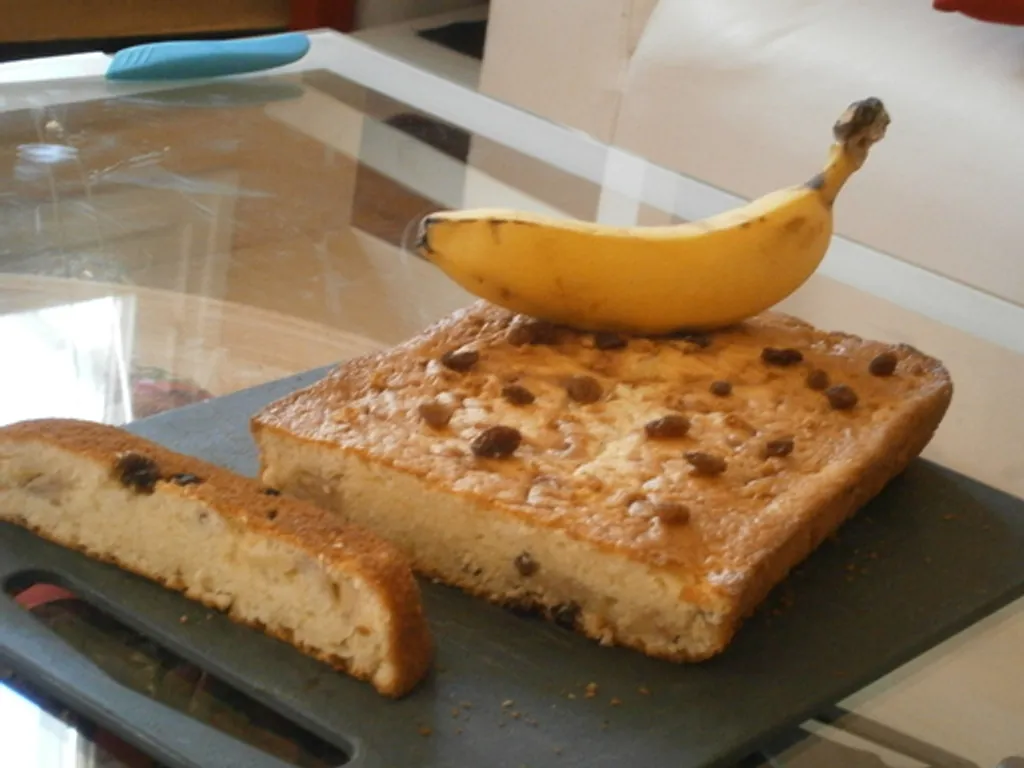 farine, sucre, huile, levure, lait, sucre, sel, beurre, banane, raisins secs, yaourt nature