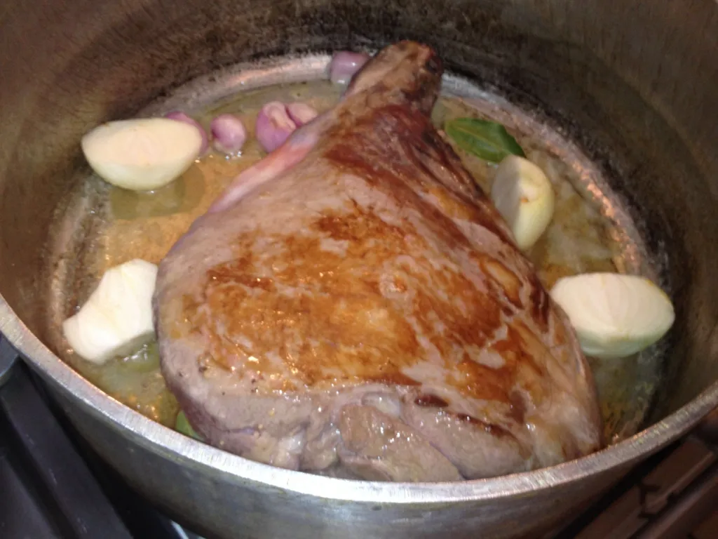 laissez cuire plus ou moins 2h à feu doux. suivant la grosseur de votre morceau de viande. piquez pour vérifier la cuisson. le sang ne sort plus, le gibier est cuit.