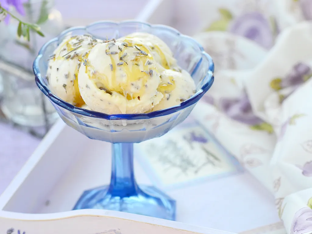 dans un bol, mélanger 2 cuillères à soupe de fleurs de lavande au vin, réserver dans un endroit chaud durant 5 min pour laisser les saveurs se développer.