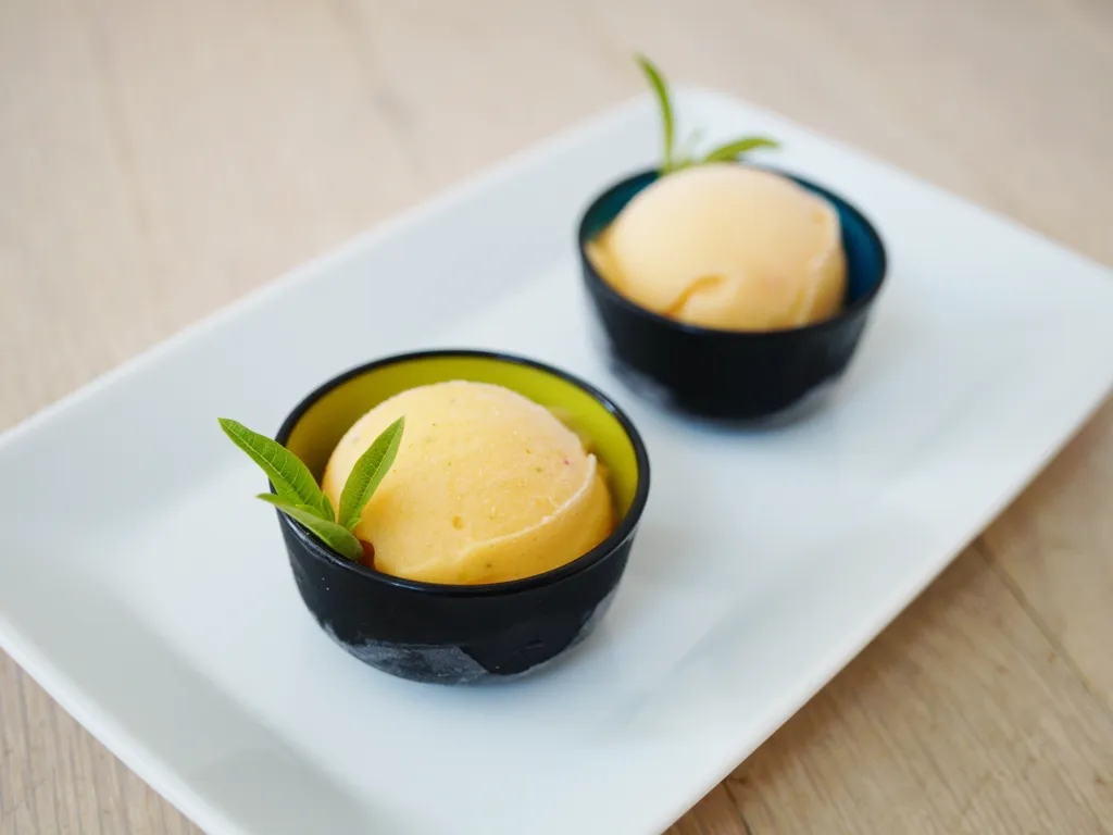 passez la crème à la verveine au chinois et turbinez en sorbetière.