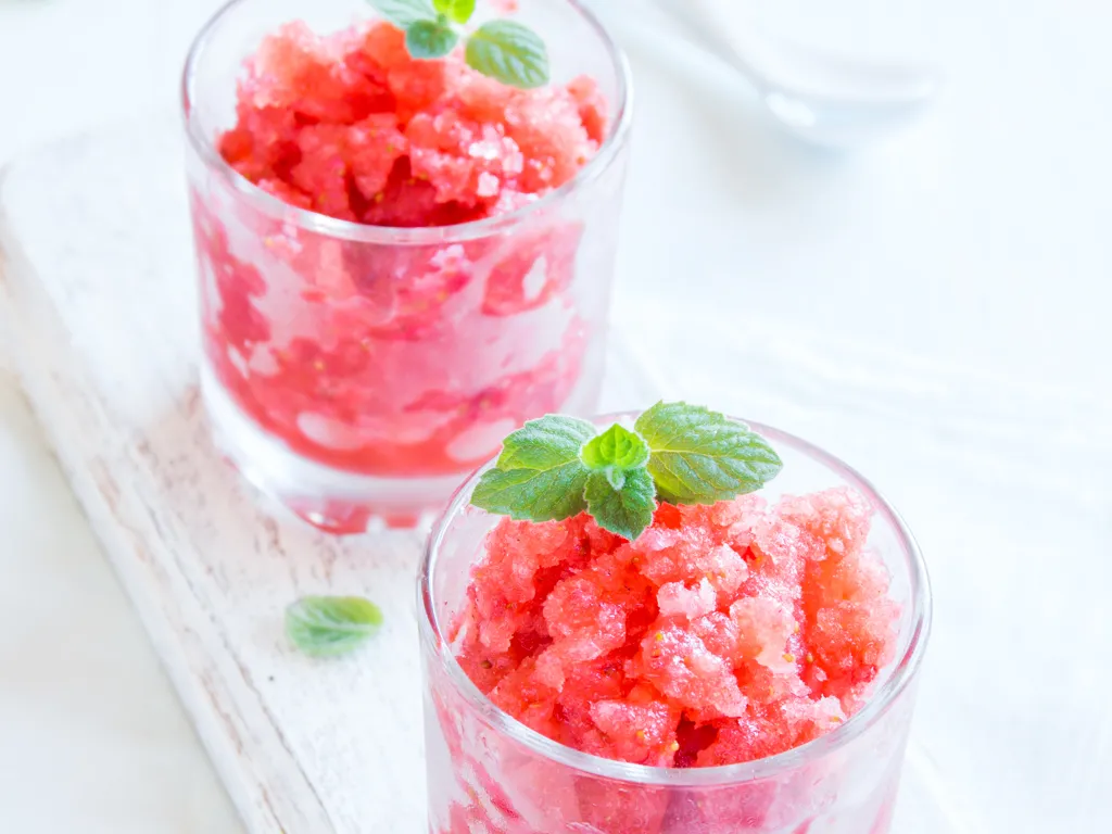 les sortir juste au moment de servir et les passer au blender avec l'eau fraiche et le sucre.