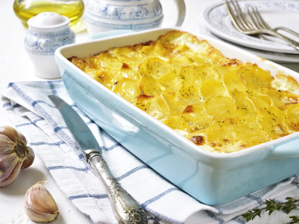 pomme de terre, lait, ail, gruyère râpé, beurre, poivre, sel, cèpes, crème fraîche épaisse