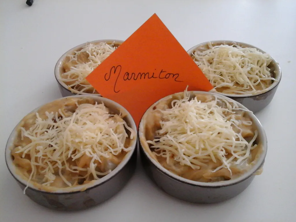 remplir 4 ramequins et parsemer de fromage râpé et mettre au 15 min pour bien gratiner.