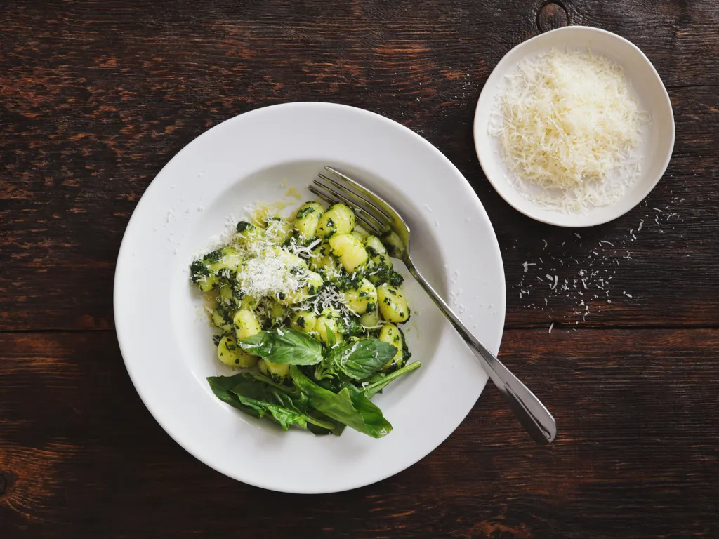 poivre, sel, muscade, gnocchi, épinards, crème liquide, gruyère