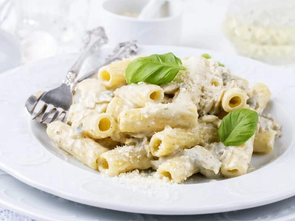 ail, crème fraîche, courgette, parmesan râpé, poivre, sel, penne, jambon