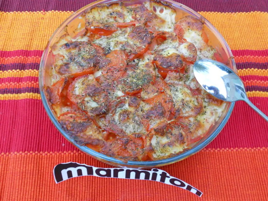 tomate, aubergine, herbes de provence, huile d'olive, poivre, sel, mozzarella