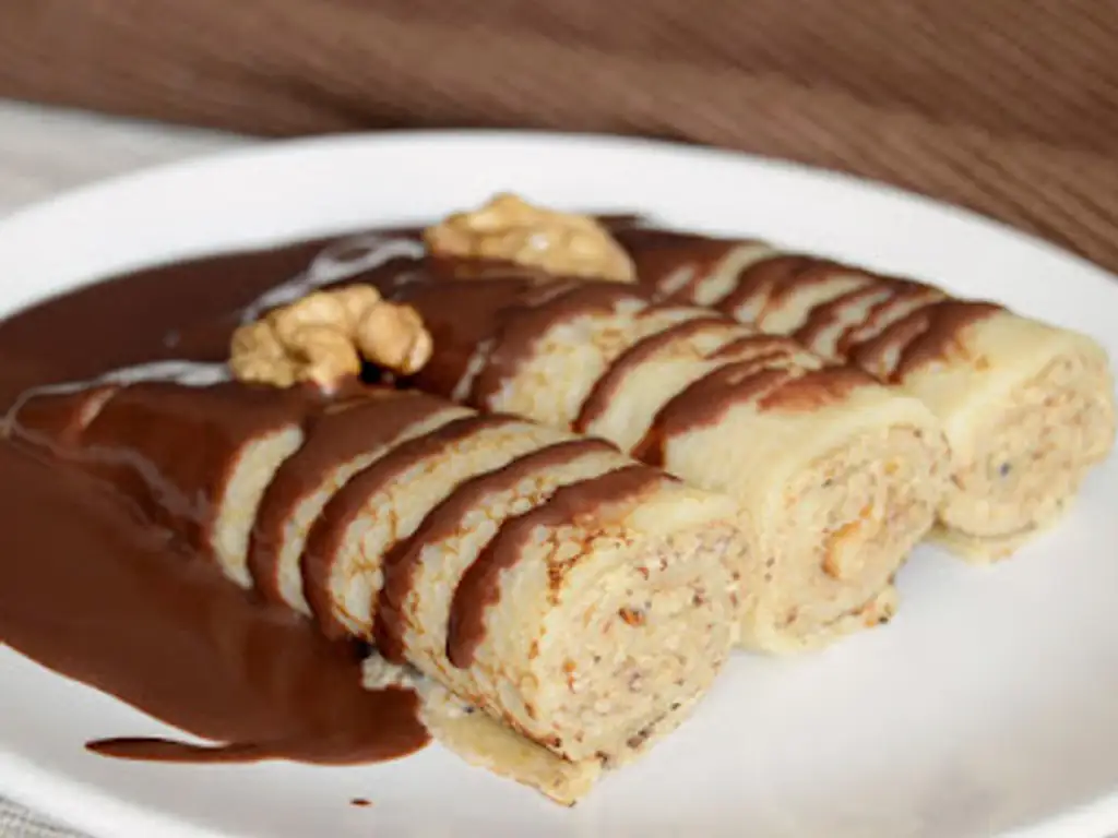 mettre 3 crêpes garnies par assiette encore chaude, verser de la crème chocolatée par dessus.