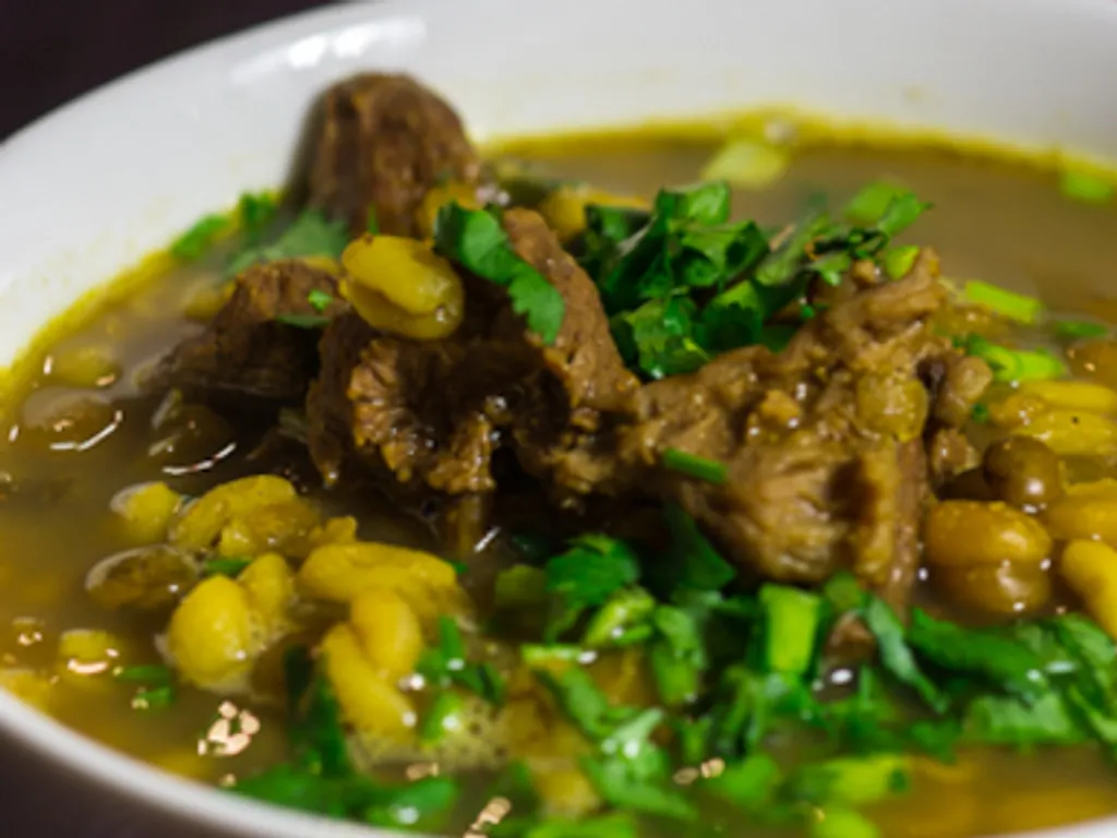 pois cassés, oignon, ail, cumin en poudre, cannelle, anis étoilé, cardamome, muscade, curcuma, sel, poivre, coriandre, viande d’agneau, lentilles, lentilles, blé, girofle