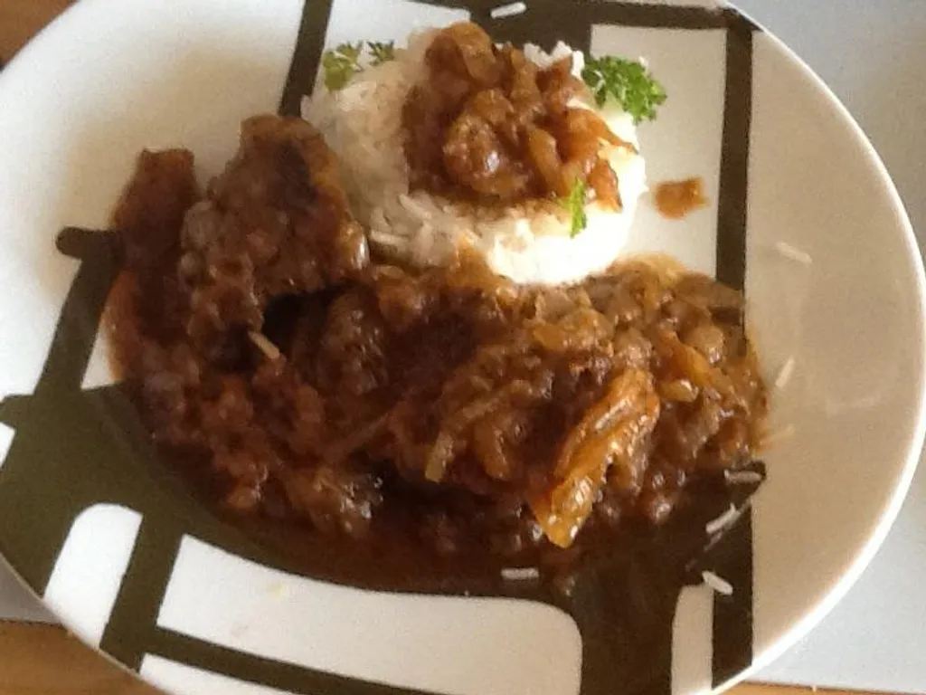 la viande cuit uniquement dans le jus des oignons.