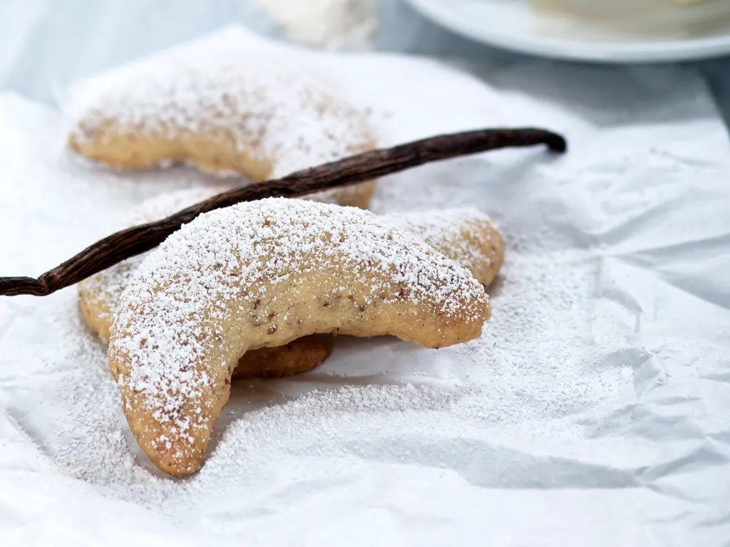 détaillez en tranches de 1 cm, puis coupez chaque tranche en 2. façonnez les demi-cercles en croissants.
