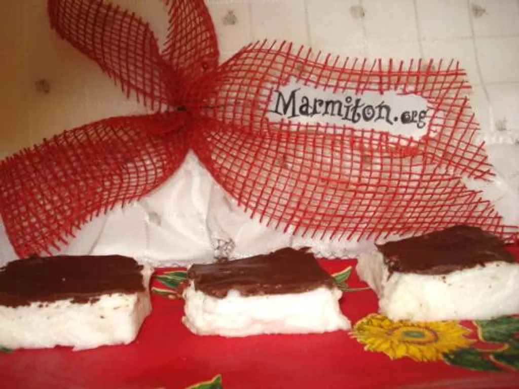 sans cessez de battre les blancs, incorporez le sirop de sucre, puis la gélatine (vous pouvez la découper en petits bouts, sinon ça peut gicler!), et éventuellement les arômes (ou des amandes concassées...).