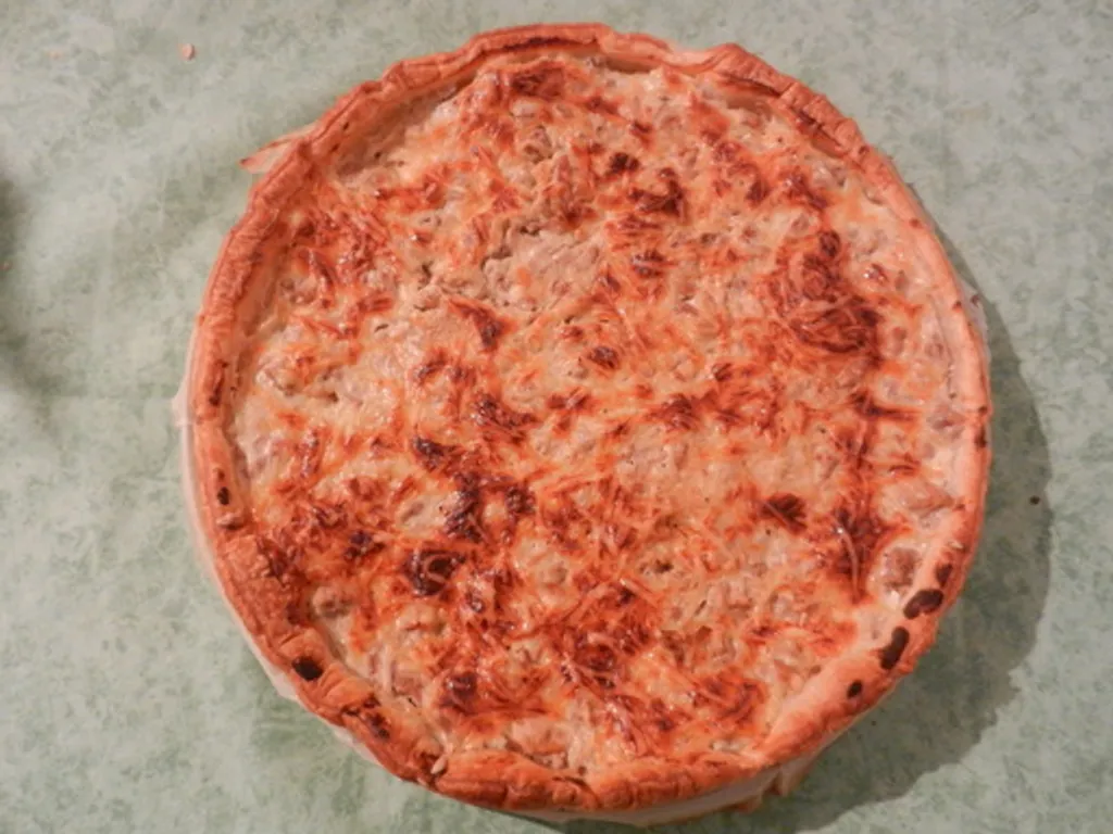 pâte brisée, tomate, gruyère râpé, moutarde à l'ancienne, poivre, sel, paprika, thon, crème fraîche liquide