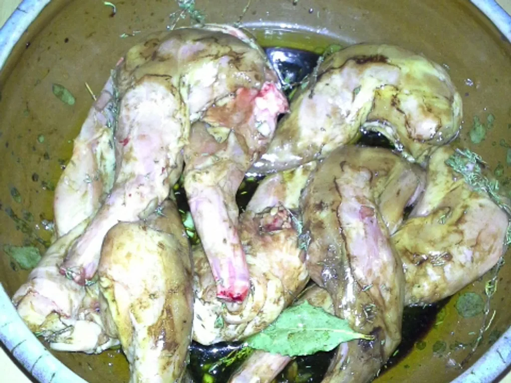 ail, feuille de laurier, romarin, vinaigre balsamique, huile d'olive, vin blanc, lapin