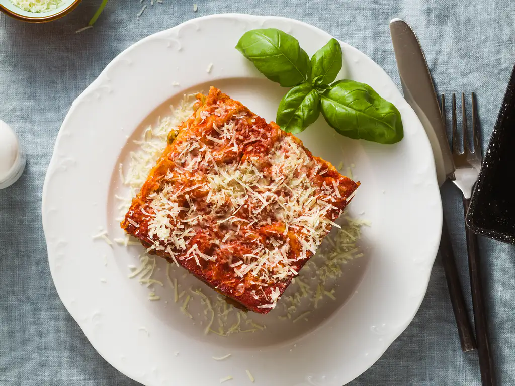 lasagnes, gruyère râpé, lait, farine, beurre, muscade, poivre, sel, sauce tomate, tomates concassées, ail, herbes de provence, huile d'olive, miel, mozzarella, fromage de chèvre, béchamel