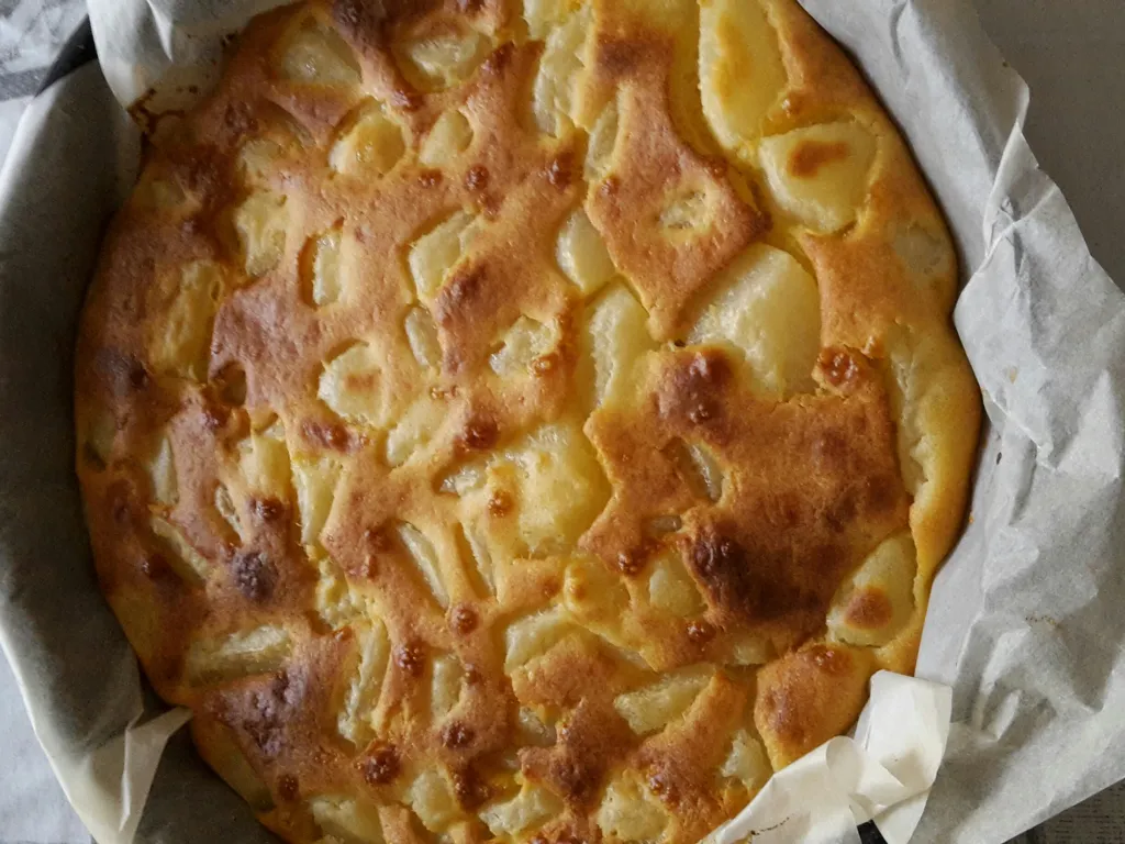 épluchez les poires, découpez-les en morceaux et ajoutez-les à la préparation. mélangez une dernière fois