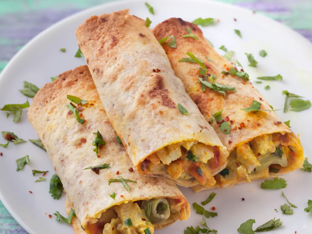 moutarde, ketchup, huile d'olive, curry, jus de citron, crème fraîche, tortilla, escalope de dinde, échalote, olives vertes, cornichons, ciboulette