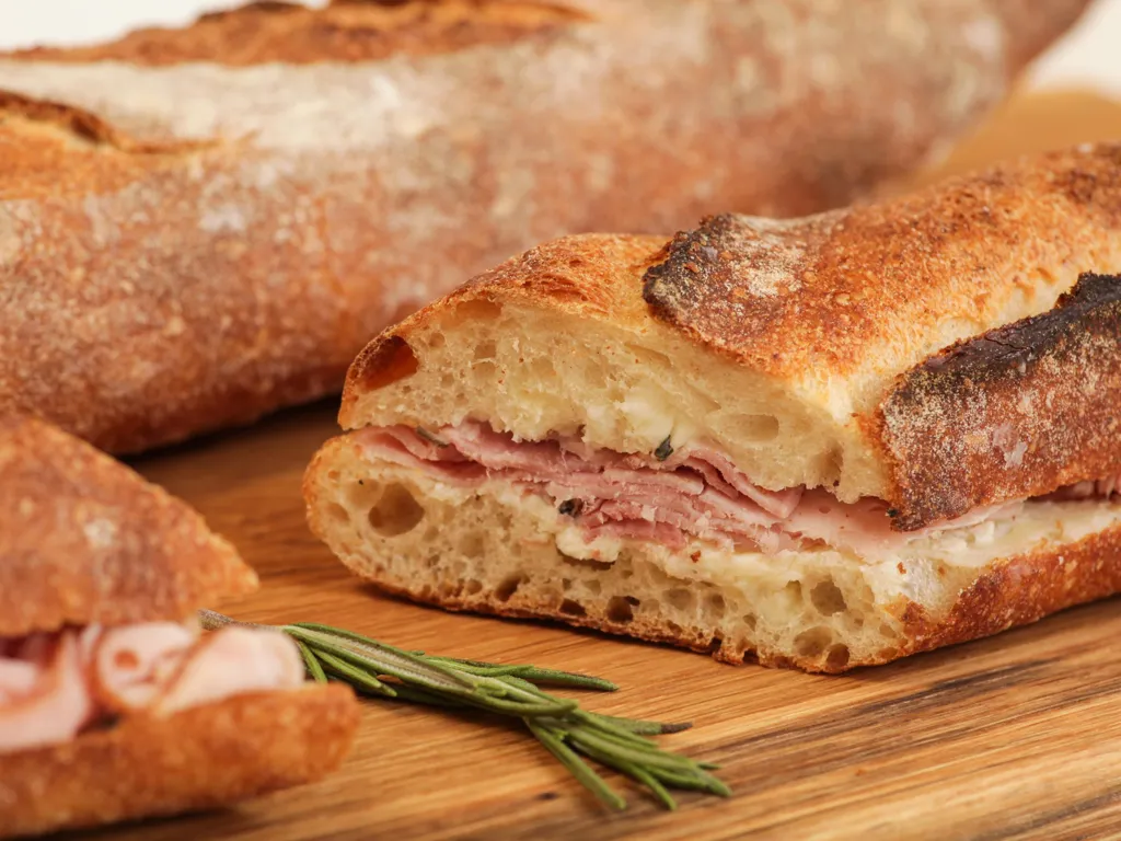 beurrer les 2 faces de la baguette. plier délicatement la tranche de jambon et la disposer dans la baguette.