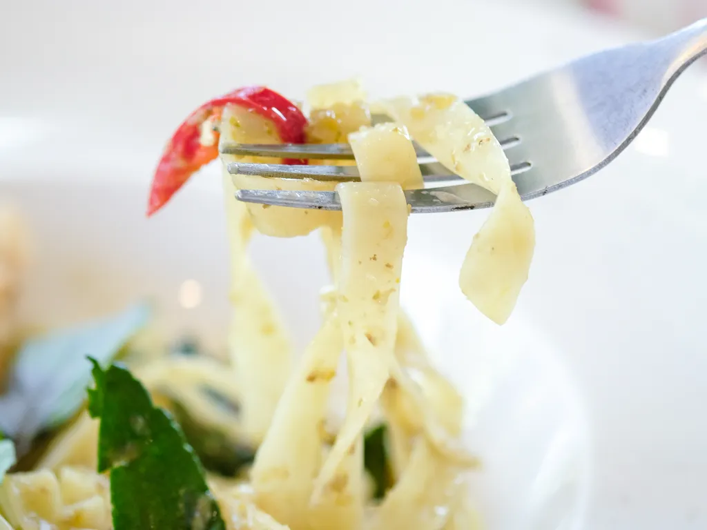 ail, crème fraîche, vin blanc, bouillon de légumes, persil, huile d'olive, poivre, linguine, écrevisse, endive, mélange 4 épices