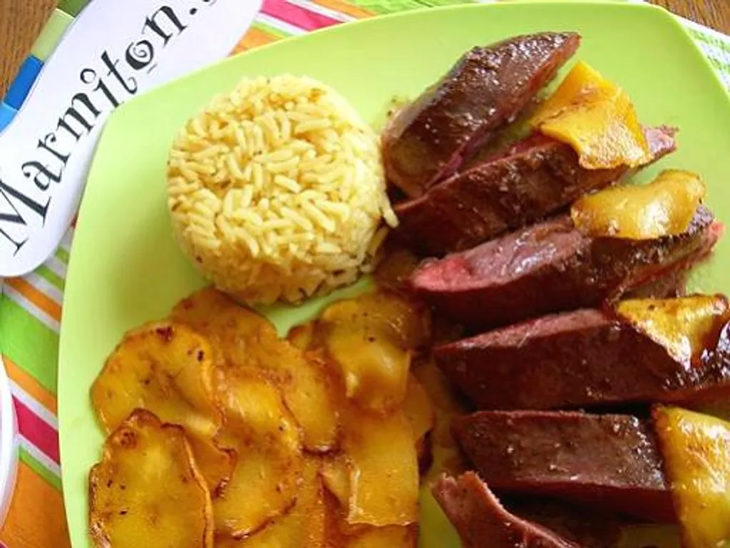 vinaigre de framboise, beurre, gros sel, magret de canard, mangue