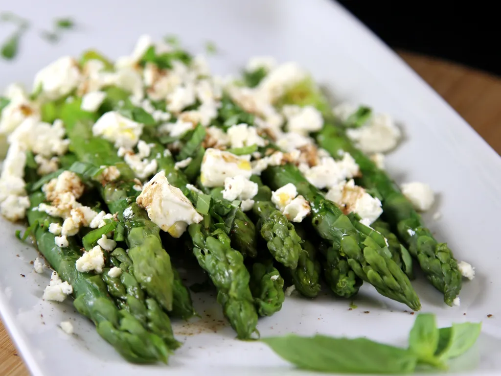 asperge, huile d'olive, vinaigre balsamique, feta, basilic frais