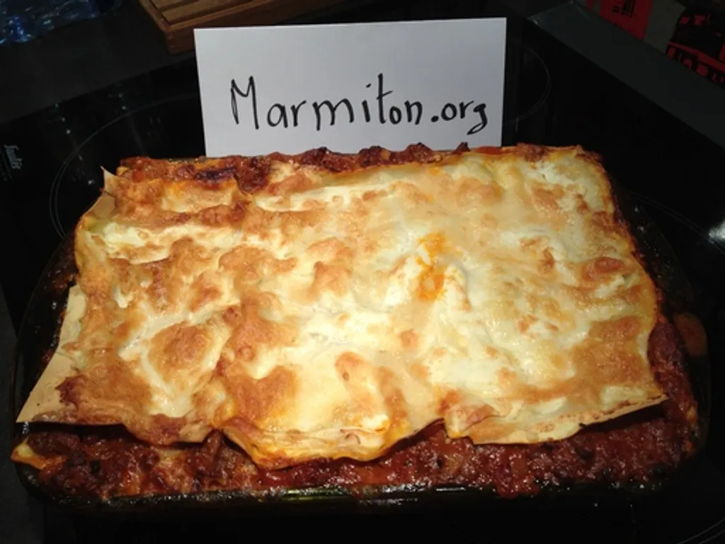 couvrir le fond avec 3 plaques de lasagne (les éponger en les sortant de la gamelle si elles ont été précuites)