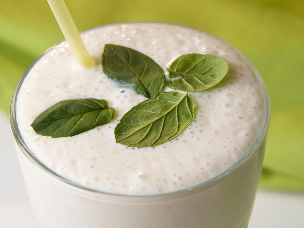 mixez les carrés frais, la menthe, et les glaçons de lait ensemble.