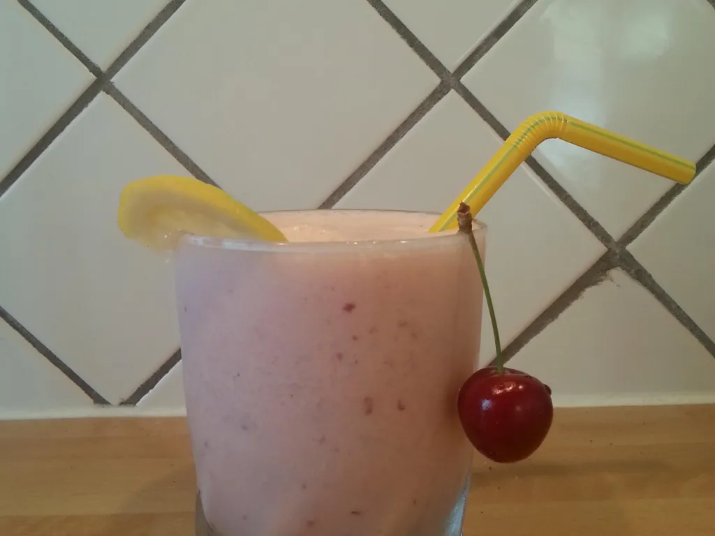 dans un blender/mixer, mélangez tous les ingrédients avec le jus du citron et les cerises, mixez... servez !