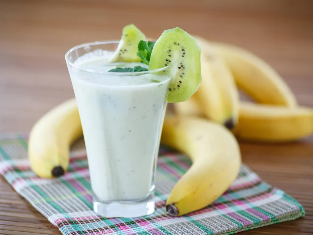 banane, pomme, lait, sucre en poudre, kiwi, avocat