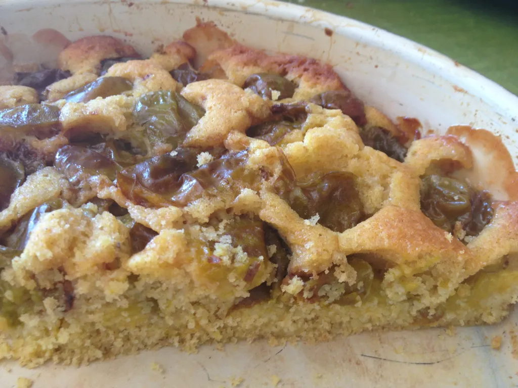 beurre, sucre, farine, maïzena, amandes en poudre, levure, oeuf, arôme vanille, prune