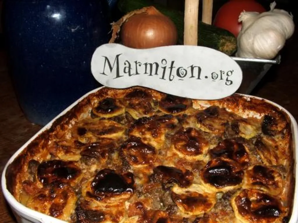 dans un plat à four huilé, alterner des couches de courgettes coupées en tranches avec des couches de viande. terminer par les courgettes et le mélange de crème fraîche et de fromage.