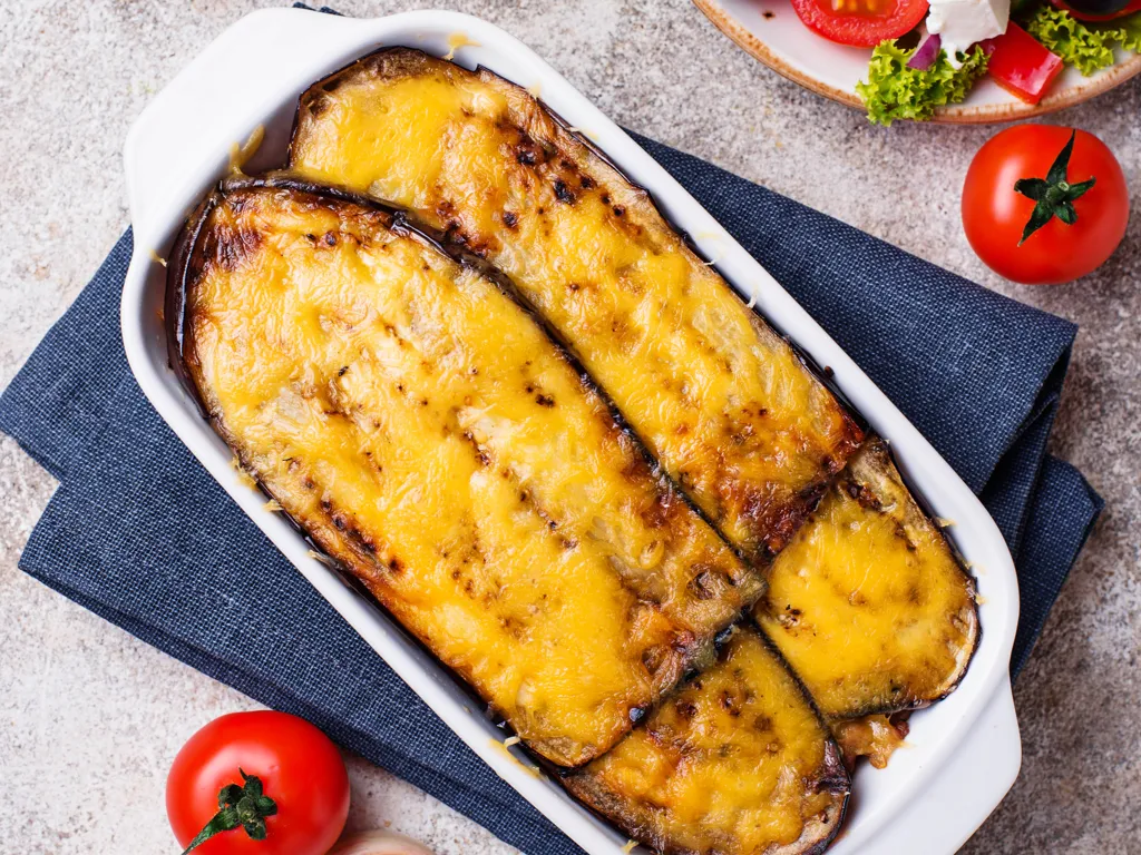 aubergine, tomate, oignon, persil, huile, ail, vin blanc sec, parmesan râpé, thym, sucre, sel, mouton, béchamel