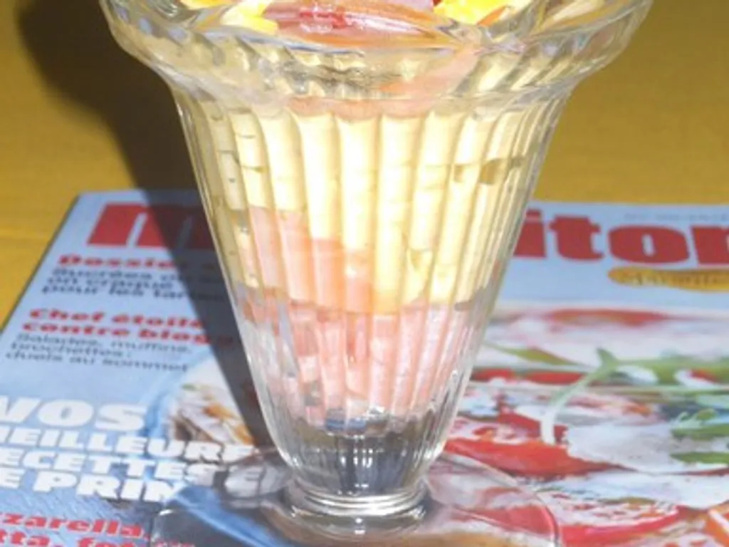 coupez le reste du saumon en lanières, coupez les tomates-cerises en 4 et décorez les coupelles avec !