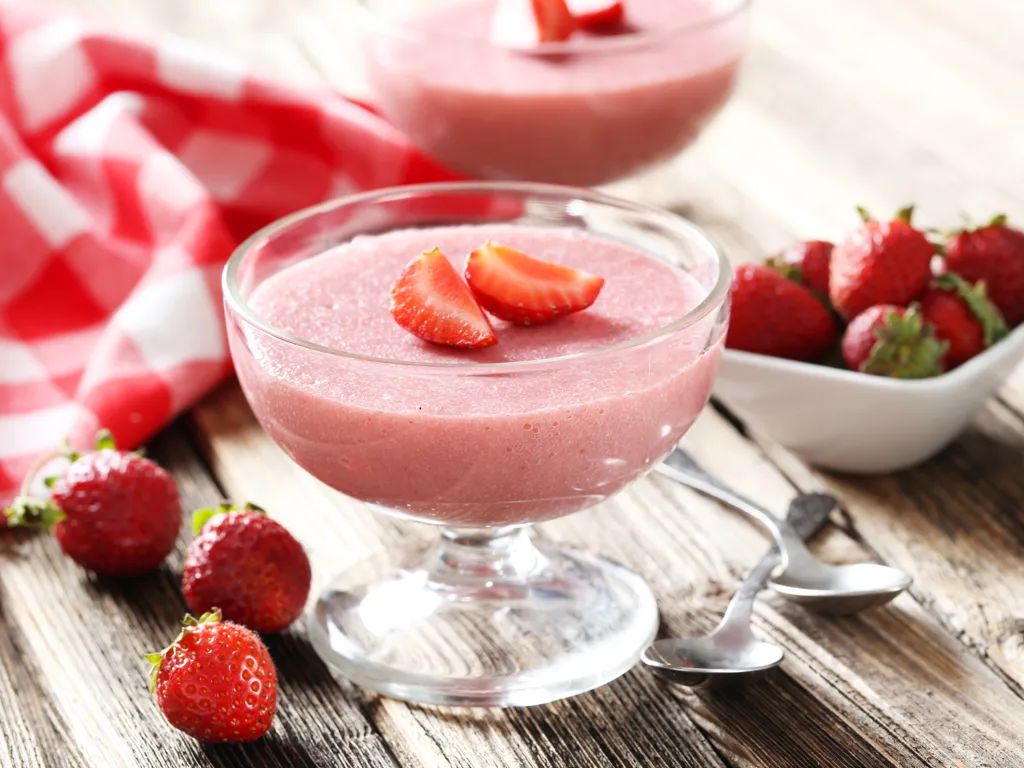 battre la crème fraîche et ajouter à la purée de fraise, ainsi que le jus de citron et le sucre.