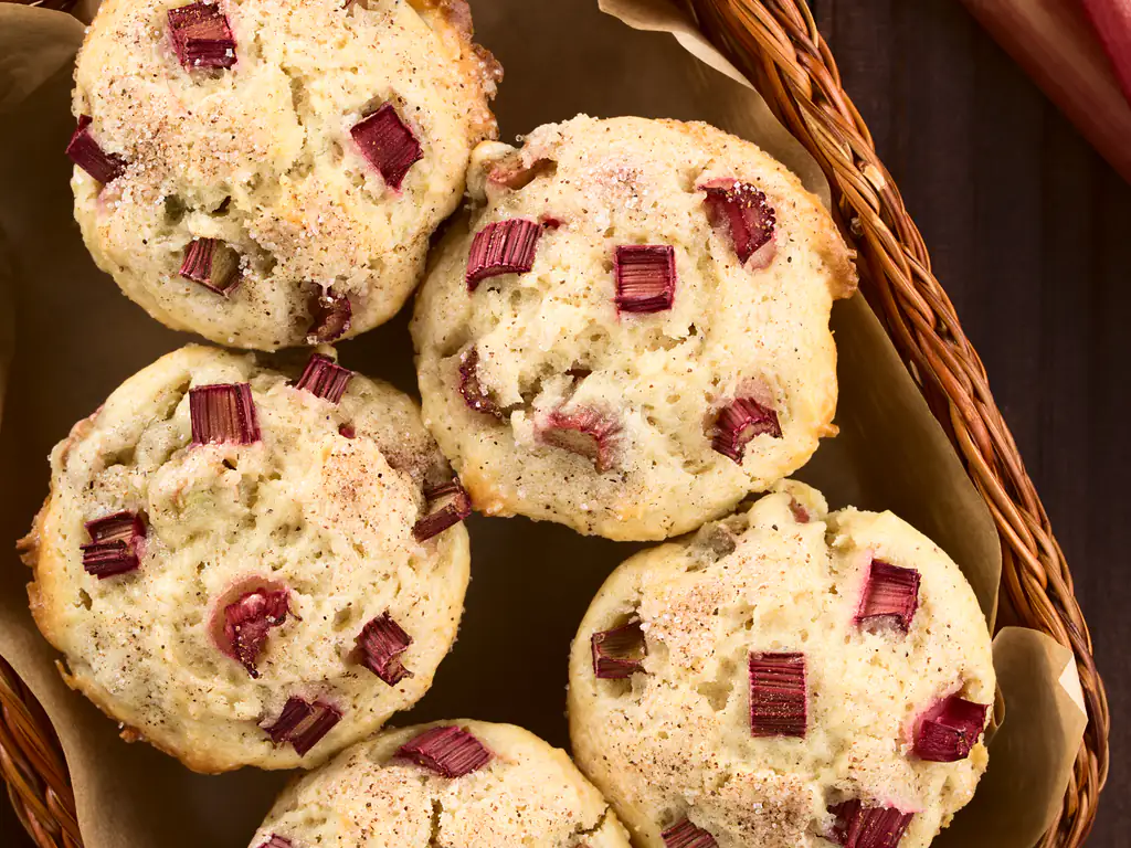 remplir le fond des moules : ajouter des morceaux de rhubarbe puis répartir les restes de pâte.