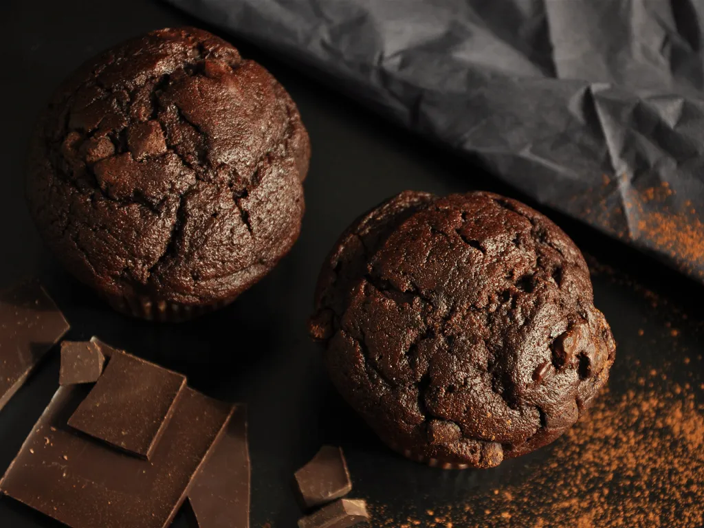 remplissez les moules aux trois-quarts. enfoncez les carrés ou demi carrés de chocolat au lait dans chaque muffin.