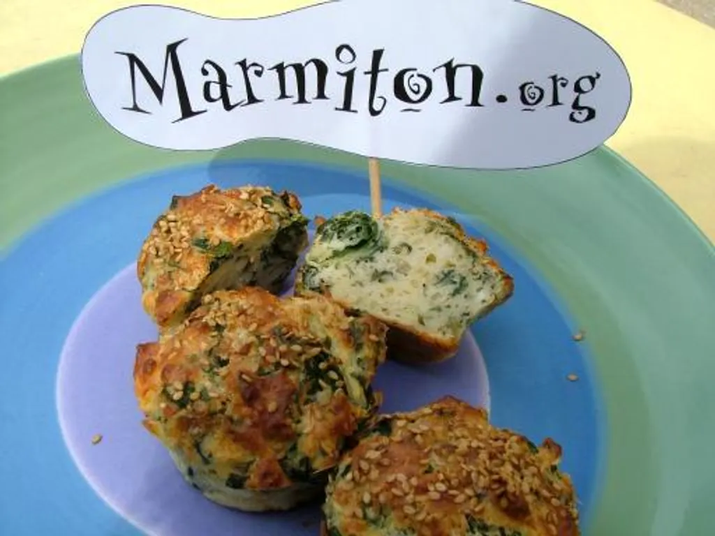verser des cuillères de pâte dans les moules. parsemer de graines de sésame.