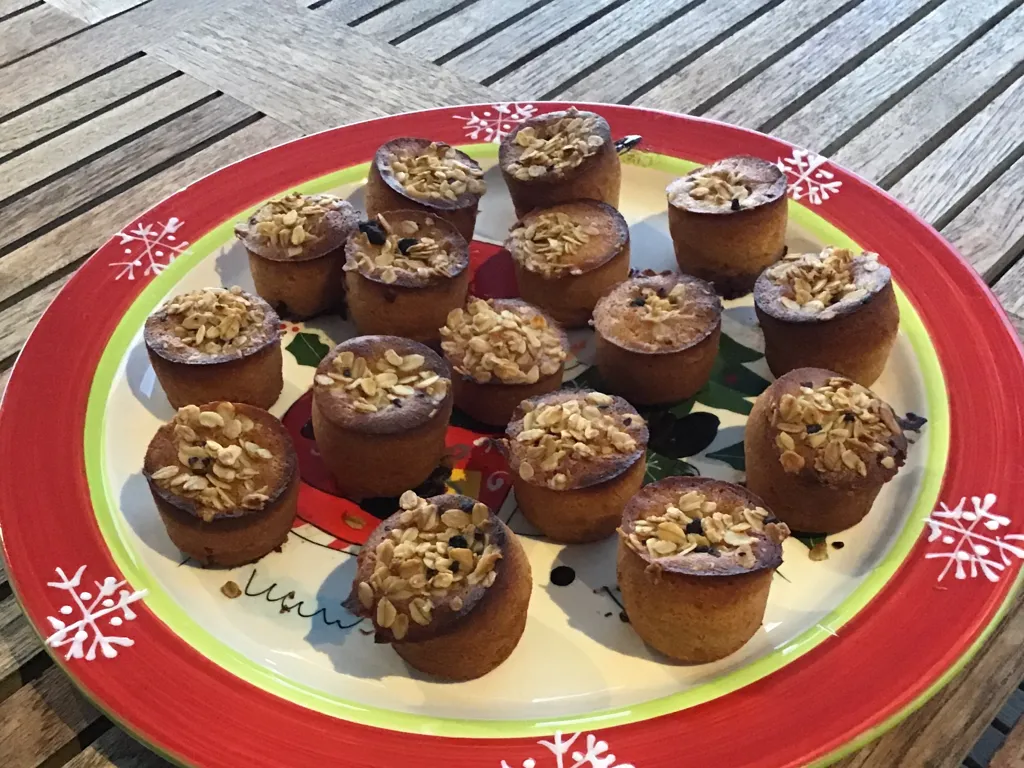 verser la préparation dans des moules à muffins avec les carrés de chocolat et saupoudrer de muesli avant d’enfourcher 20 min à 180 degrés.