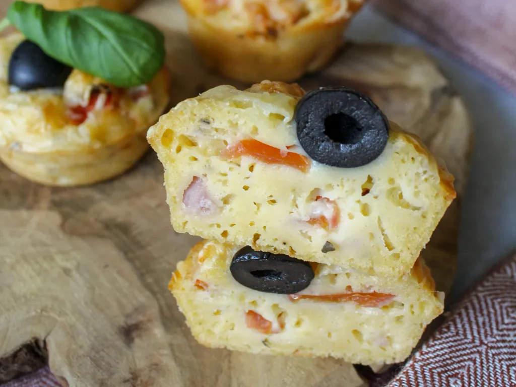 on met la préparation dans nos moules, on rajouter le reste de tomate, le reste de fromage râpé, et une petite olive sur le dessus