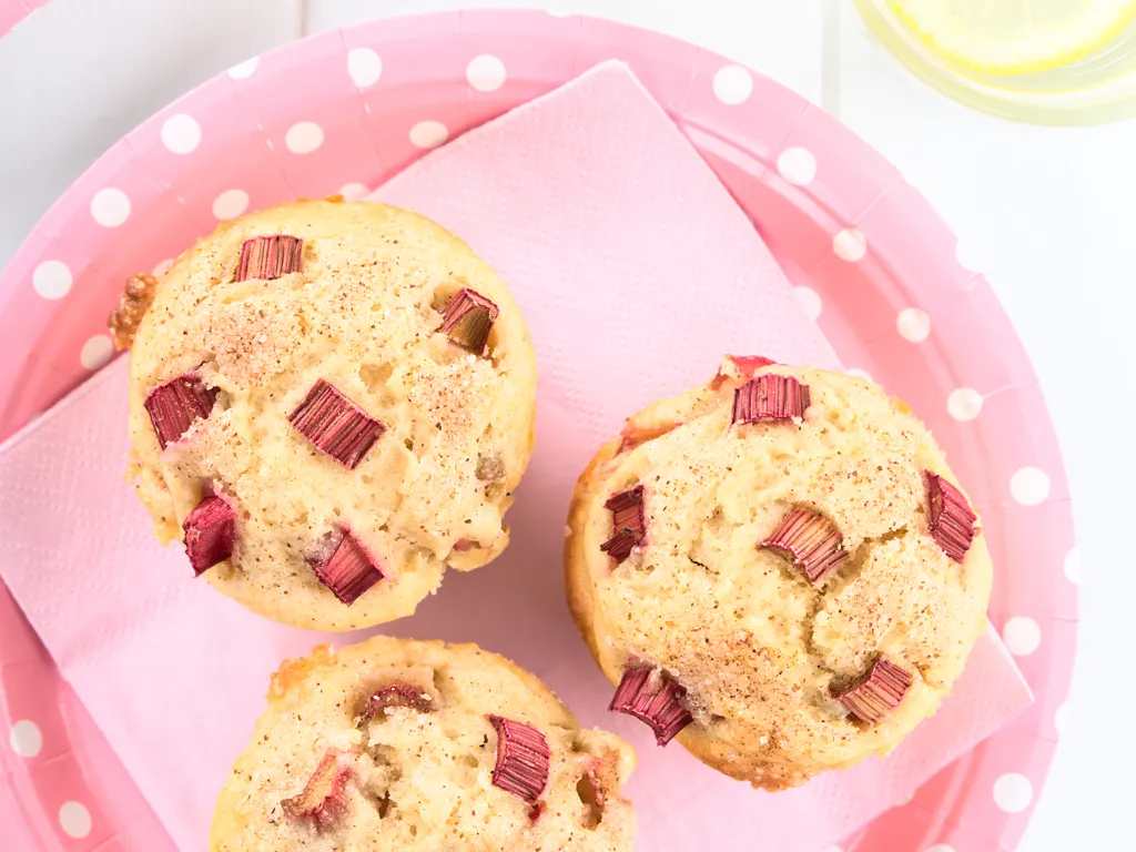 farine, levure chimique, sucre, crème fraîche, huile de tournesol, extrait de vanille, pomme, cassonade, cannelle, oeuf, rhubarbe