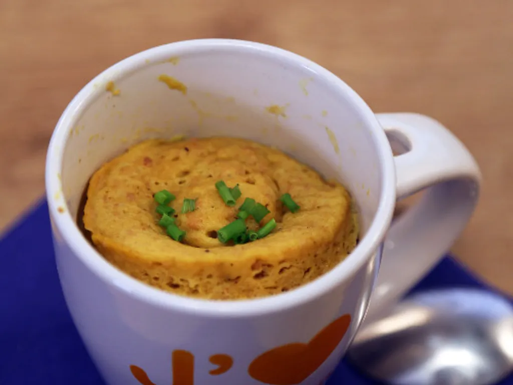 dans un mug ou tasse, déposer 1 oeuf, 1 cuillère de farine, de crème, de moutarde et la levure. saler, poivrer.