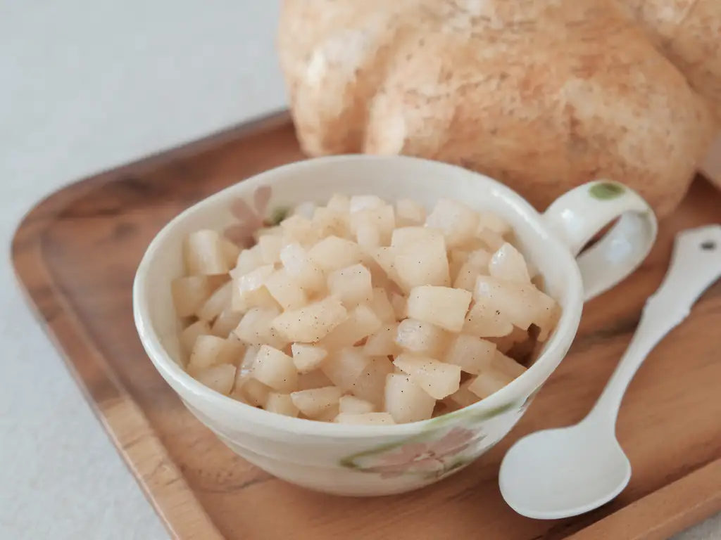 ajoutez 75 ml d’eau et le sucre, puis cuisez sur le mode « cuisson sous pression » / 9 min.