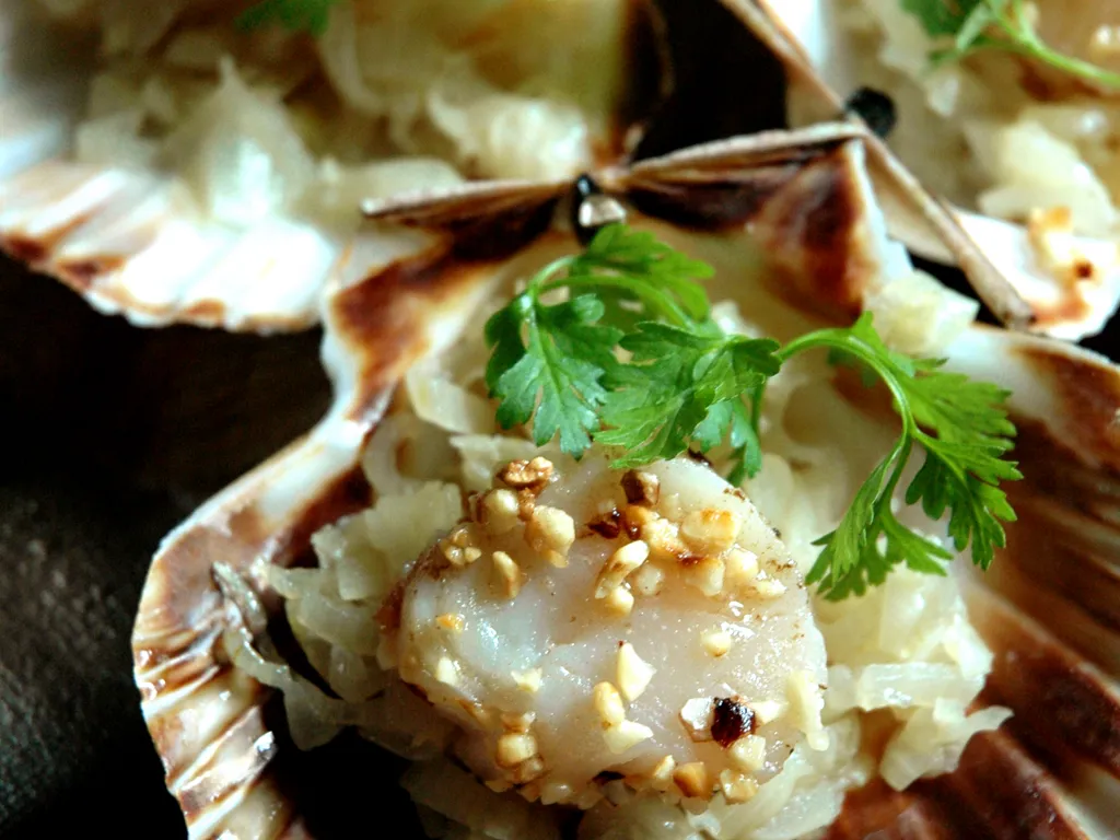 gruyère râpé, noix de saint-jacques, échalote, chapelure, moules