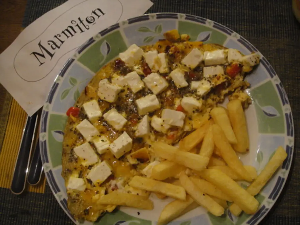 attendre que la feta soit légèrement fondue. couper le feu et verser l'omelette dans une grande assiette. servir avec une salade de mâche assaisonnée.